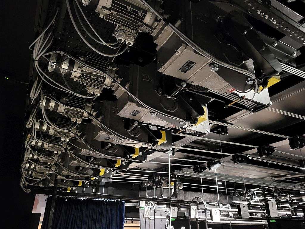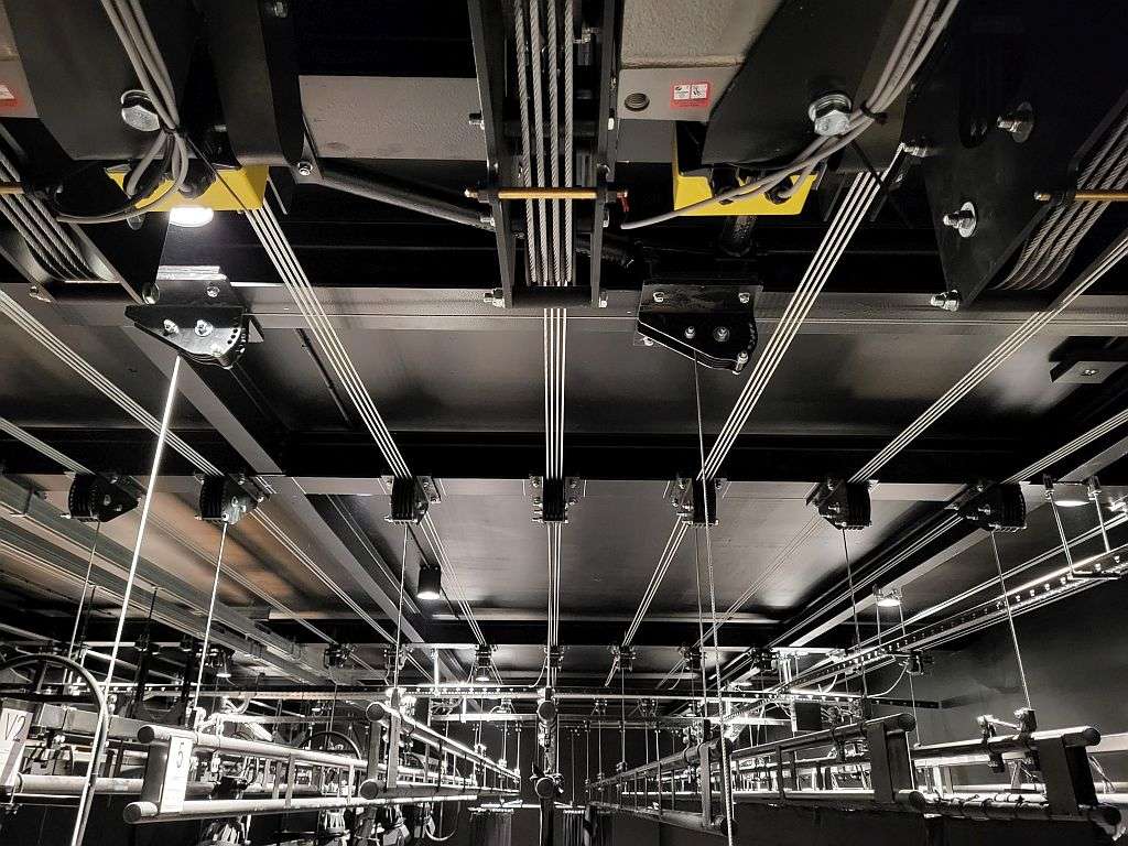We were only able to place the control of the upper stage machinery on the stage space. In addition, the mechanical assemblies of the auditorium lighting holders have been constructed in a way visible to the viewers.
