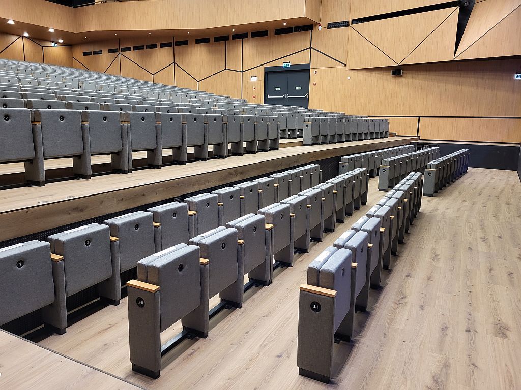The receiving structure of the mobile chairs placed on the orchestra pit had to be designed so that the cladding remains aesthetic even after the removal of the chairs.