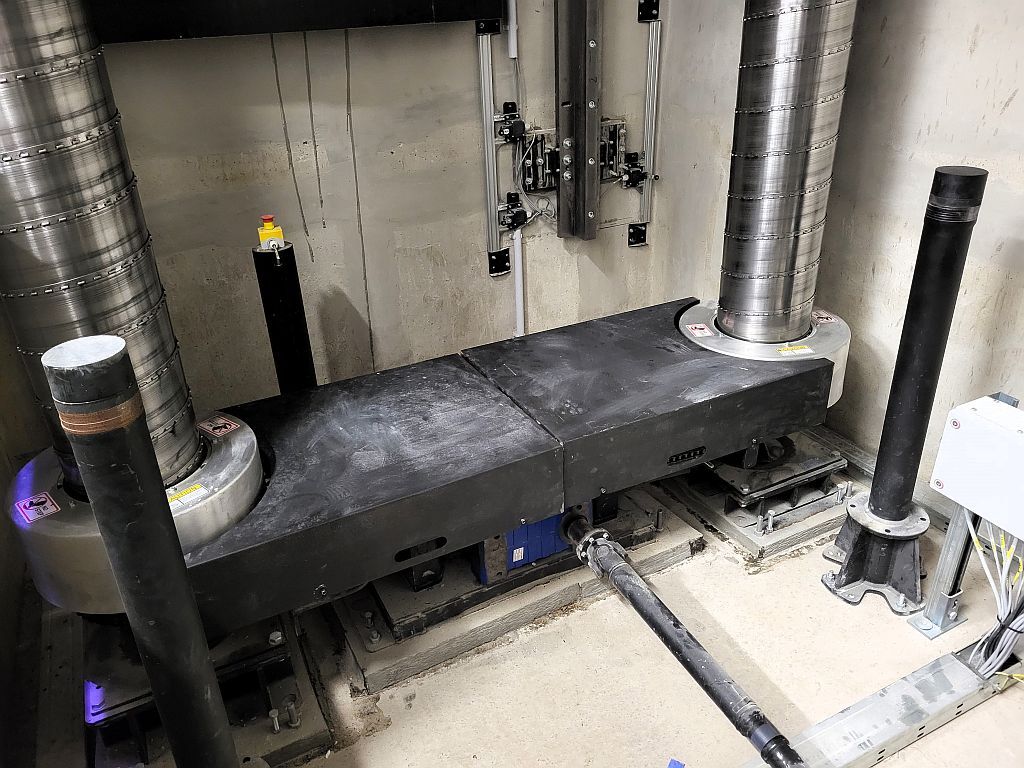 The braking resistors for the control are placed above the control cabinets to reduce the space requirements of the system.