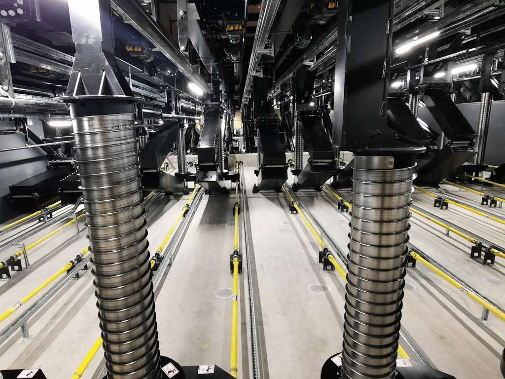 The system contains unique electronic and mechanical solutions, including the Spiralift®-driven lifting devices placed into the 3-metre-tall understage below the seat system.