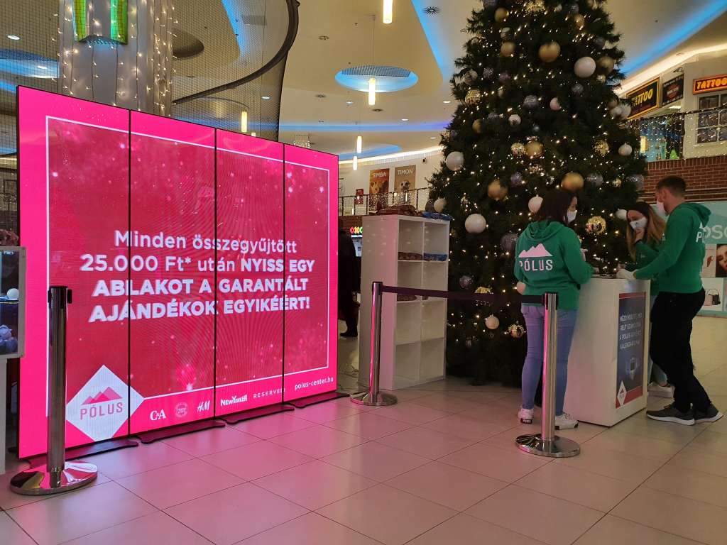 The management of the shopping mall wanted to present and advertise the Christmas fair to their customers in an unorthodox way. The visualization needed to be a novelty with the ability to display video footages as a necessary requirement.