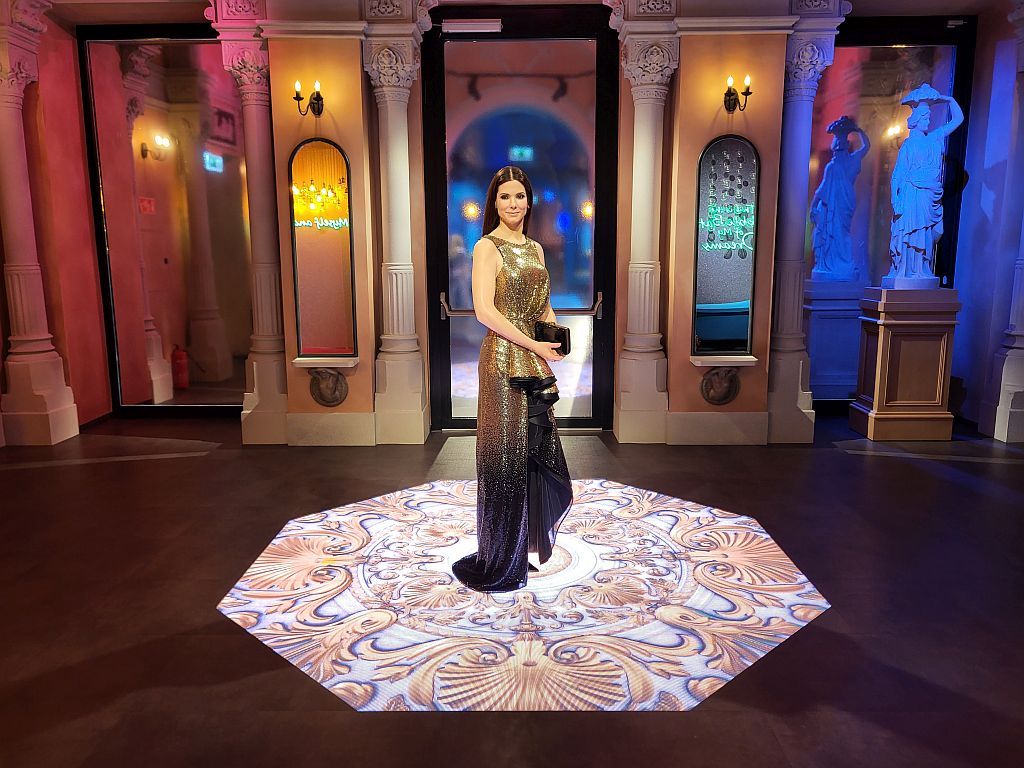 ► The design process required a novel solution for securing Sandra Bullock's wax likeness; it had to be placed in the middle of a 2.5 m wide and 2.5 m deep LED floor, securely fixed.