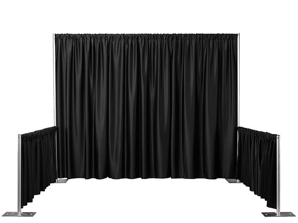 A gyors térelválasztó rendszer drapériatartóinak köszönhetően az átmeneti helyszín dekorációjának elhelyezése és az ideiglenes állólámpák telepítése, vagy a szabadon álló ideiglenes falak készítése soha nem volt ilyen egyszerű!