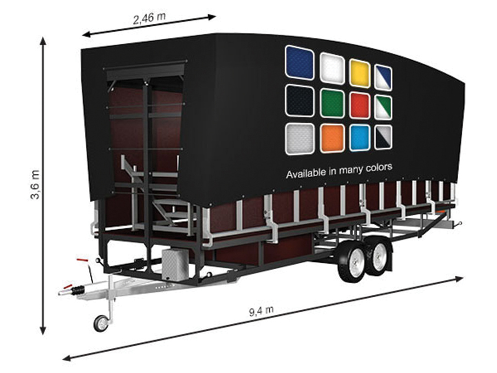 Méretek pótkocsiként: 9,4 m x 2,46 m x 3,6 m