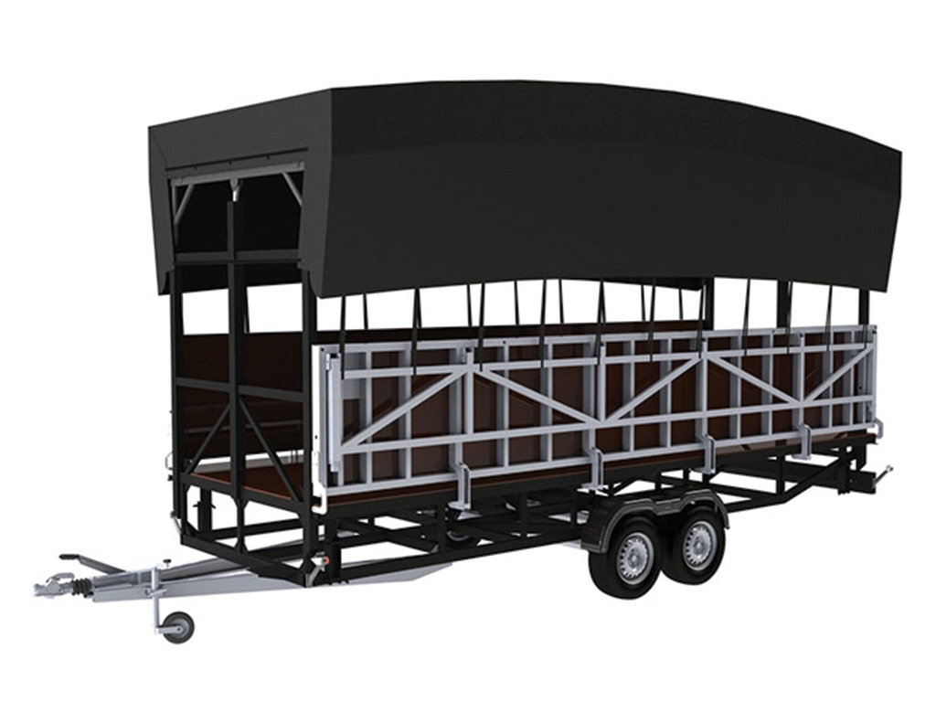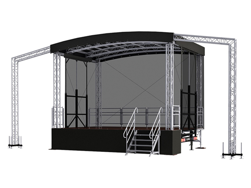 Az időjárásálló, csúszásbiztos, 24 négyzetméteres utánfutós mobil színpad profilozott / íves tetőszerkezettel, rendezvények és szabadtéri elődadások kelléke!