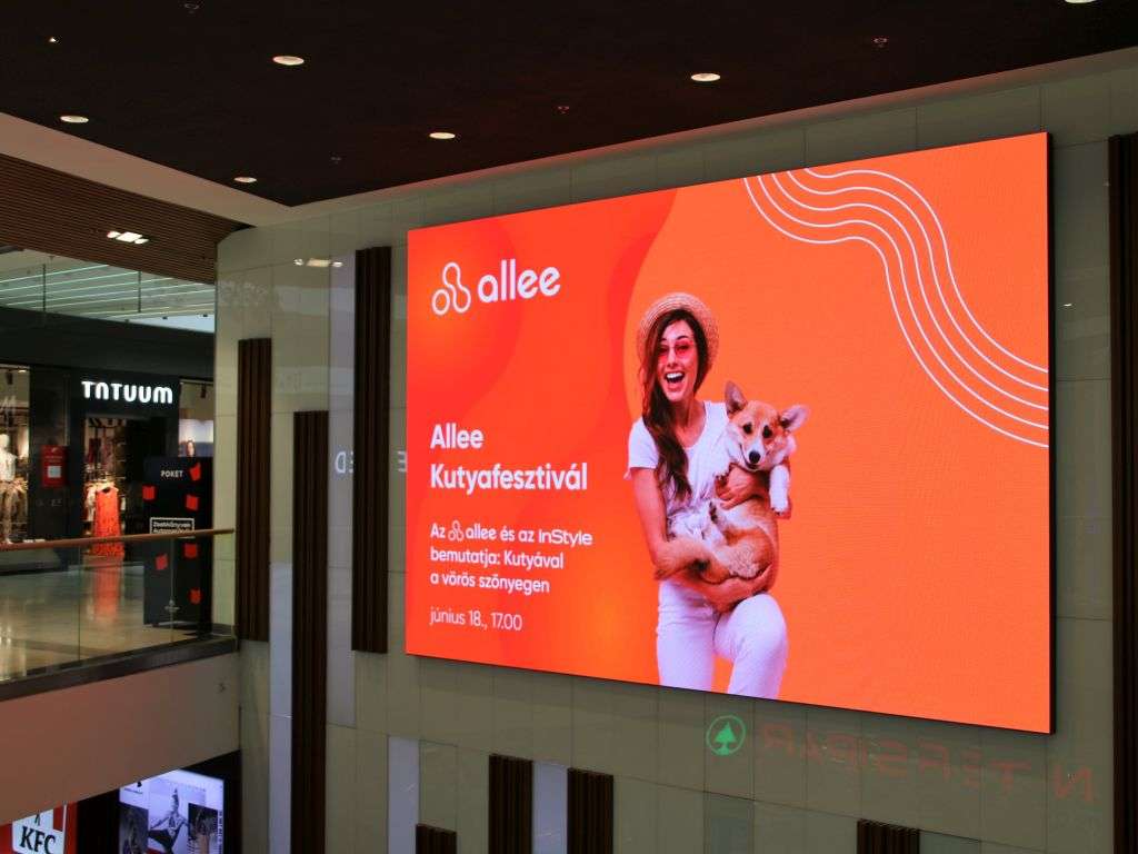 A 2021. augusztustól októberig tartó marketingkommunikációs rendszer megújítása során az Allee Bevásárlóközpont kültéri és beltéri LED-falainak cseréjét végeztük el.