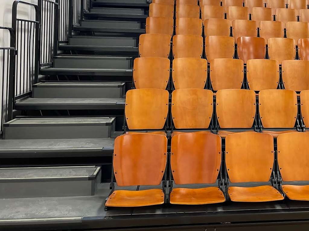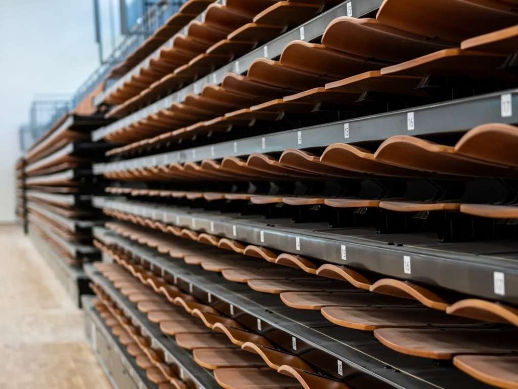 During the design phase of the grandstand we thought about creating three separate sections. The purpose was to be able to move the grandstand seats safely and using the space economically.