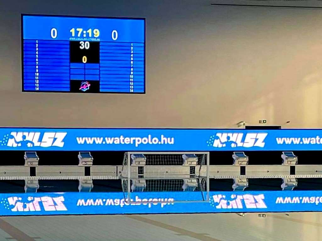 A svájci gyár által készített, nemzetközi előírásoknak megfelelő OMEGA eszközöket, illetve a nemzetközi vízilabda előírásoknak megfelelően kialakított 24,57 négyzetméteres *P8-as felbontású **SMD technológiájú LED-es eredményjelzőt és támadó időmérő órákat telepítettünk.
