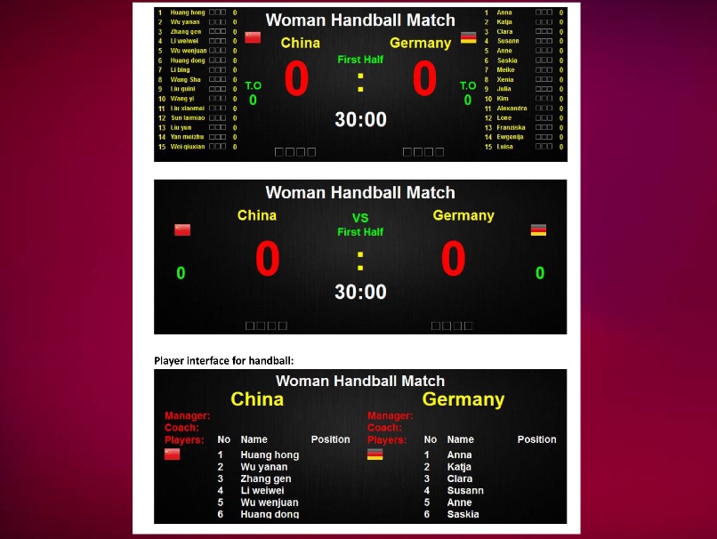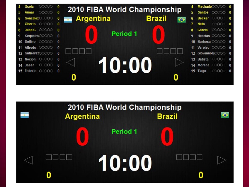 - Hazai/vendégcsapatok nevének kijelzése, csapatlogók és a játékosok nevének megjelenítése. Minden csapatspecifikus megjelenítőelem (képek, logók, zászlók stb.) feltölthető és megjeleníthető a könnyű megkülönböztethetőség érdekében.