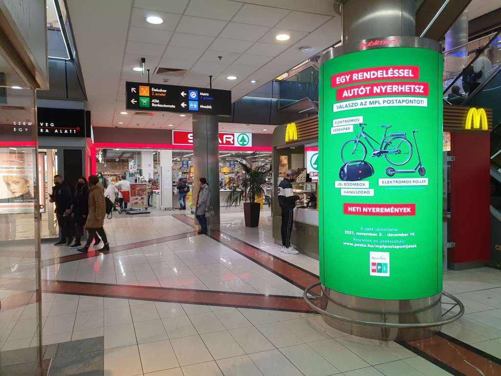LED advertising columns in the Allee and Duna Plaza and ETELE Plaza Shopping Malls