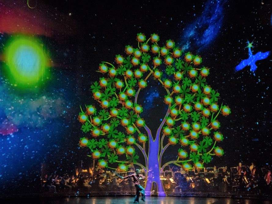 Az anyagnak átlátszónak, ugyanakkor vetíthetőnek is kellett lennie egyszerre. Ezt kizárólag tüll anyaggal lehetséges megvalósítani, azonban ez különösen bonyolult volt egy ilyen nagy méretű színpadnyílás esetében, hiszen a tüll anyagot illeszteni nem lehetséges.
