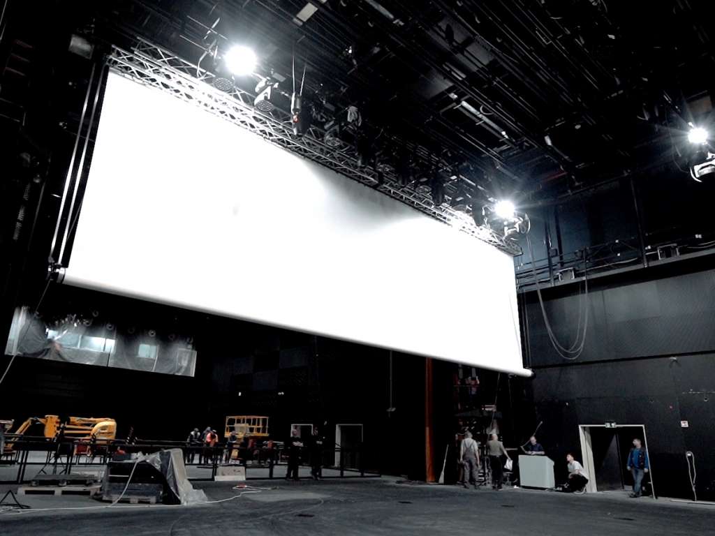 ► Vetítőfólia-mozgató rendszer telepítés: a Gerriets gyártmányú 14x8 méteres *MEGASCREEN TOUR rendszert ajánlottuk a megrendelőnek. A 600 kilogramm súlyú rendszert több kisebb, egymáshoz szerelhető darabokban szállítottuk a helyszínre és juttattuk el azon belül a megfelelő terembe.