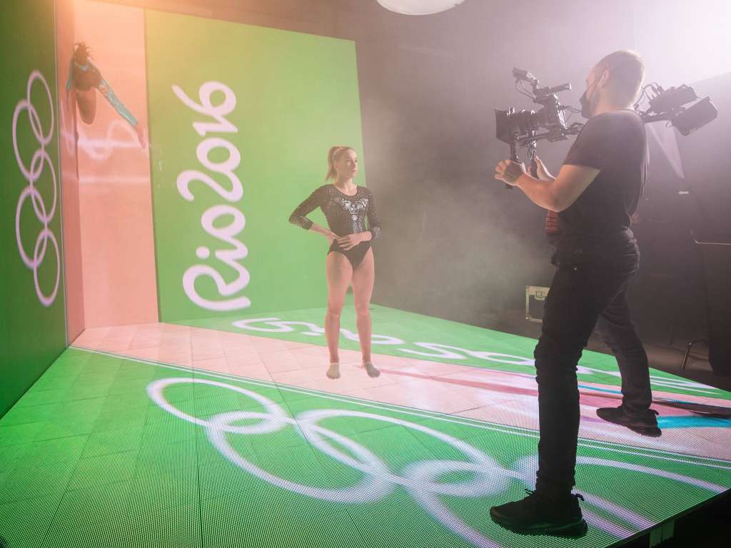 Proiectare și construcție; platoul s-a bazat pe un ecran cu LED-uri pentru podea Uniview *P6.25 rezistent la traficul de persoane, cu ecrane LED realizate din module de interior LEDSkin *P3.1 pe ambele părți.