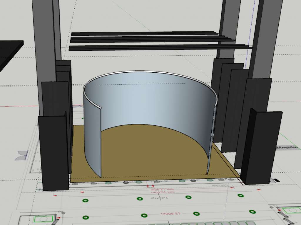 O provocare suplimentară este faptul că spectatorii care stau pe marginile din dreapta și din stânga ale sălii nu pot vedea spatele curbelor care se îndoaie spre interior. Se aștepta ca toți spectatorii să se bucure de aceeași experiență vizuală unică, realizată vizual prin intermediul materialului.