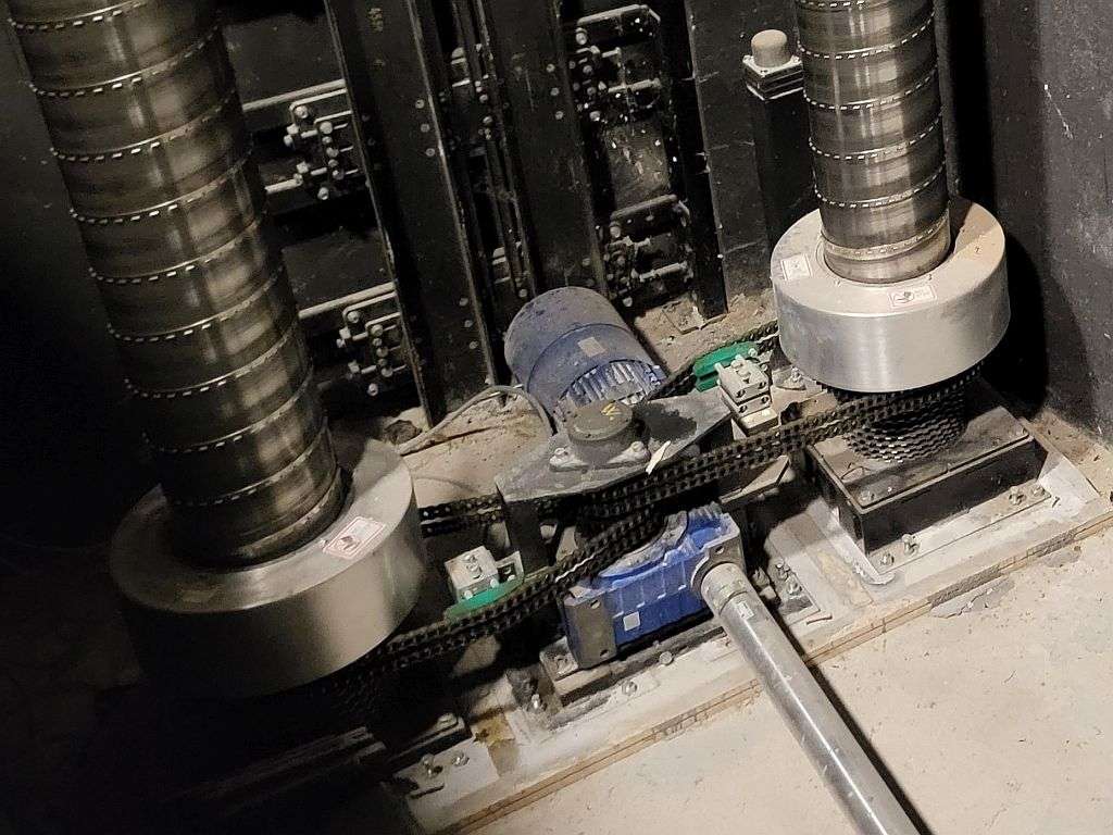 Rotirea este asigurată de 2 motoare electrice de câte 3 kW, de tip KU50A, cu angrenaj cu roți dințate elicoidale, prevăzut cu roți de contrasusținere într-un mecanism de transmisie prin roți de fricțiune.