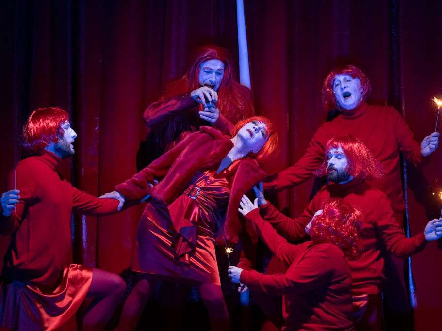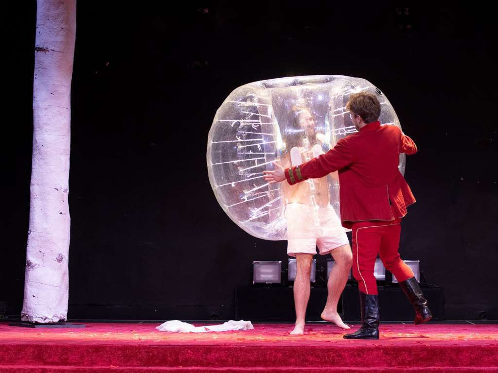 Partenerul ne-a comandat o perdea de nori din satin roz pentru spectacolul "Visul unei nopți de vară".