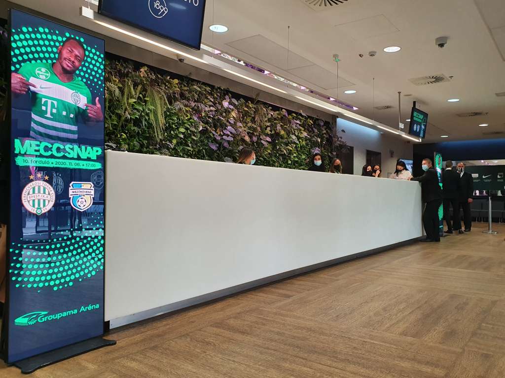 De comun acord cu clientul, am amplasat patru afișaje LED poster digital fiecare cu o rezoluție de 224x756 pixeli (*P2.5), pe care clubul sportiv Ferencváros Torna Club a afișat conținutul propriu preîncărcat și al partenerilor săi de sponsorizare sub formă de imagini fixe și videoclipuri.