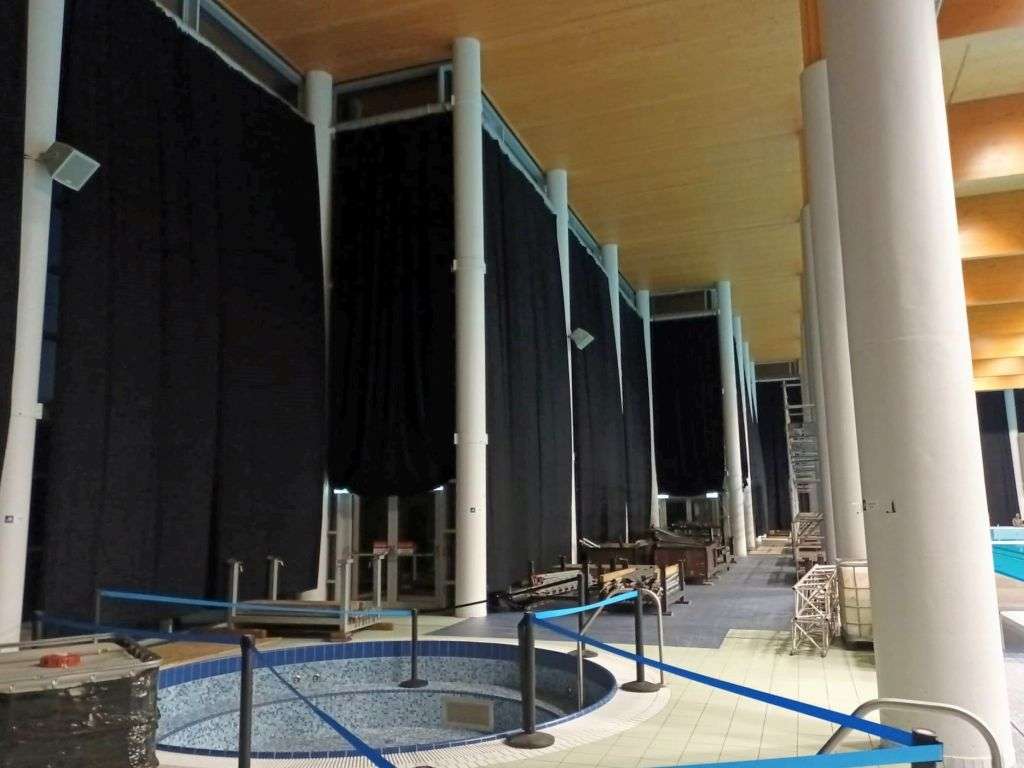 At two locations of FINA 2022 water polo a total of 1566 square meters of blackout curtains were installed.