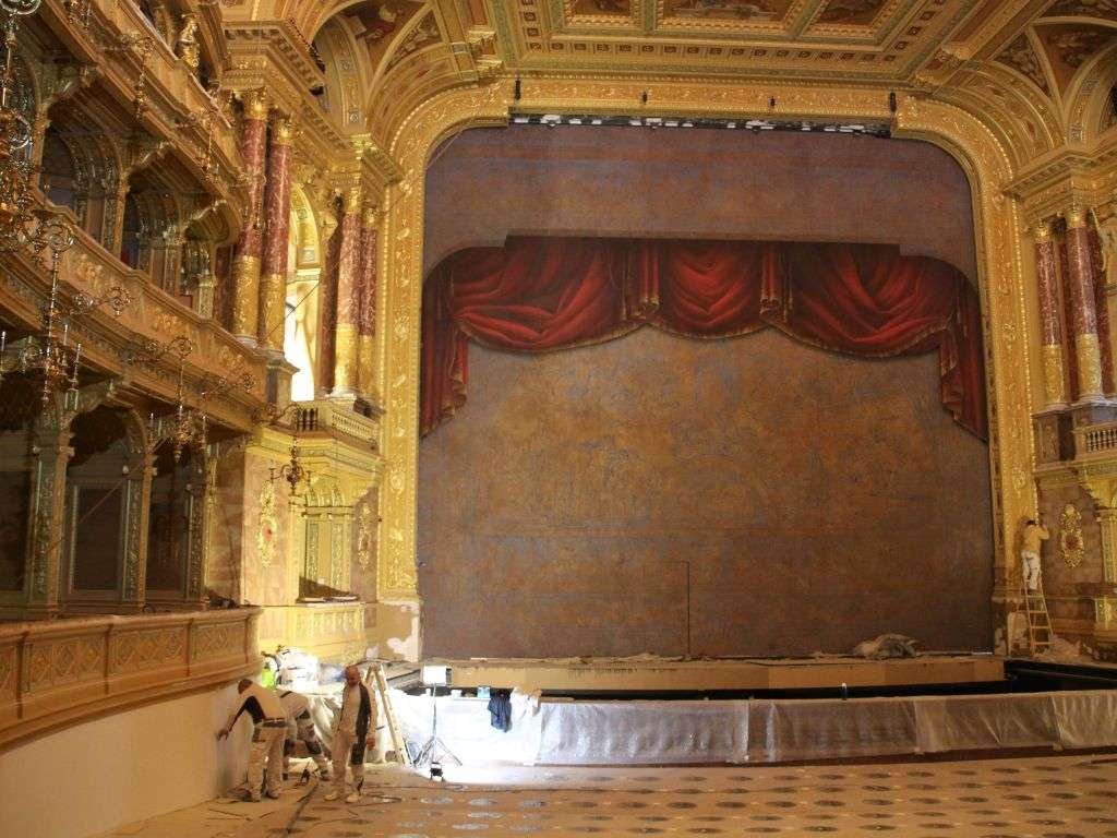 The assignment was to laminate a hand-painted canvas to the safety curtain in the framework of the complete renovation of the Hungarian State Opera, prepared in the studio of the establishment.