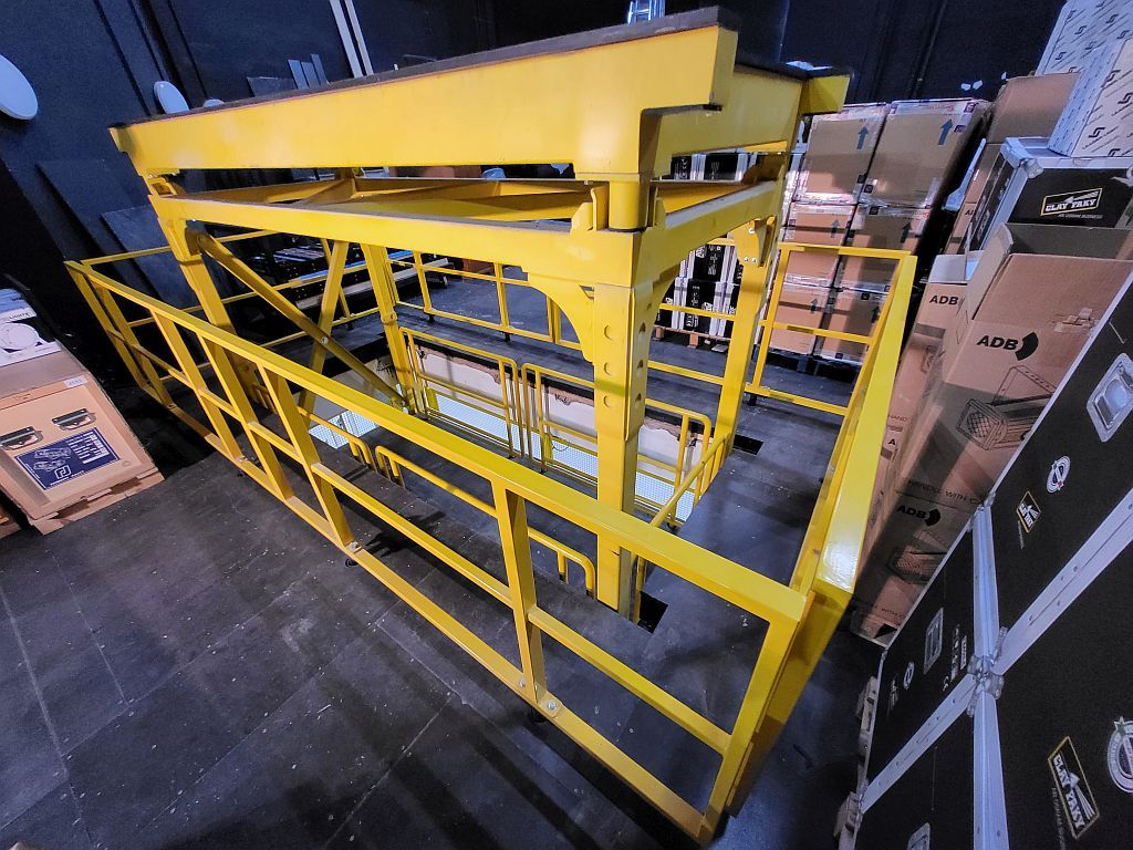 We built 2 closed, acoustically sized housings on the existing fly system to accommodate the machine units and control cabinets of the upper stage machinery.